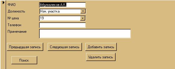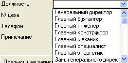 Поля № цеха и Должность заполнятся автоматически так как они привязаны к