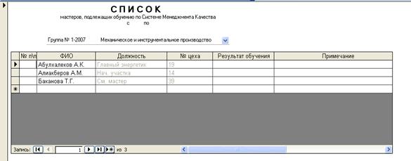 Рис.7 Форма «Список на