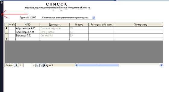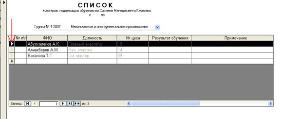 групп». Необходимо ввести дату, а затем заполнить список путем выбора