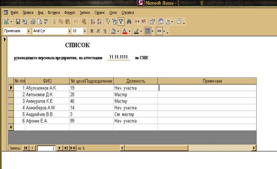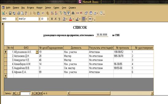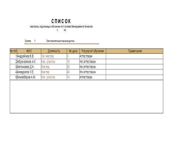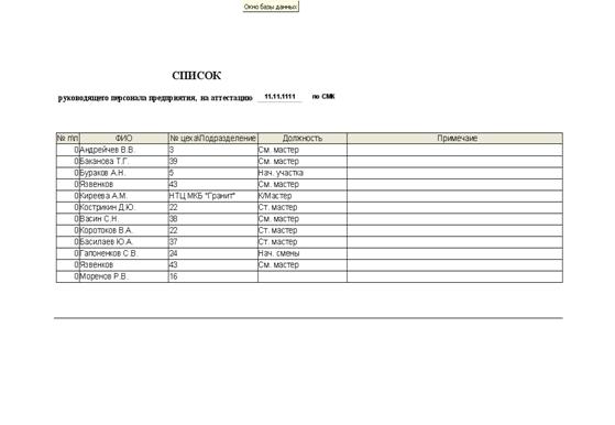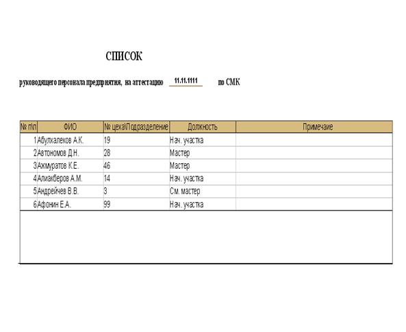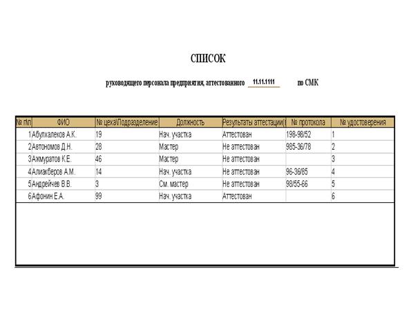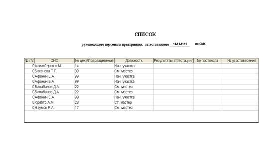 создания «списка руководящего персонала предприятия, на аттестацию»
