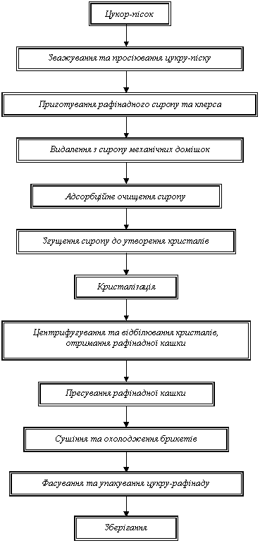 Загальна технологія виробництва цукру-піску та цукру рафінаду