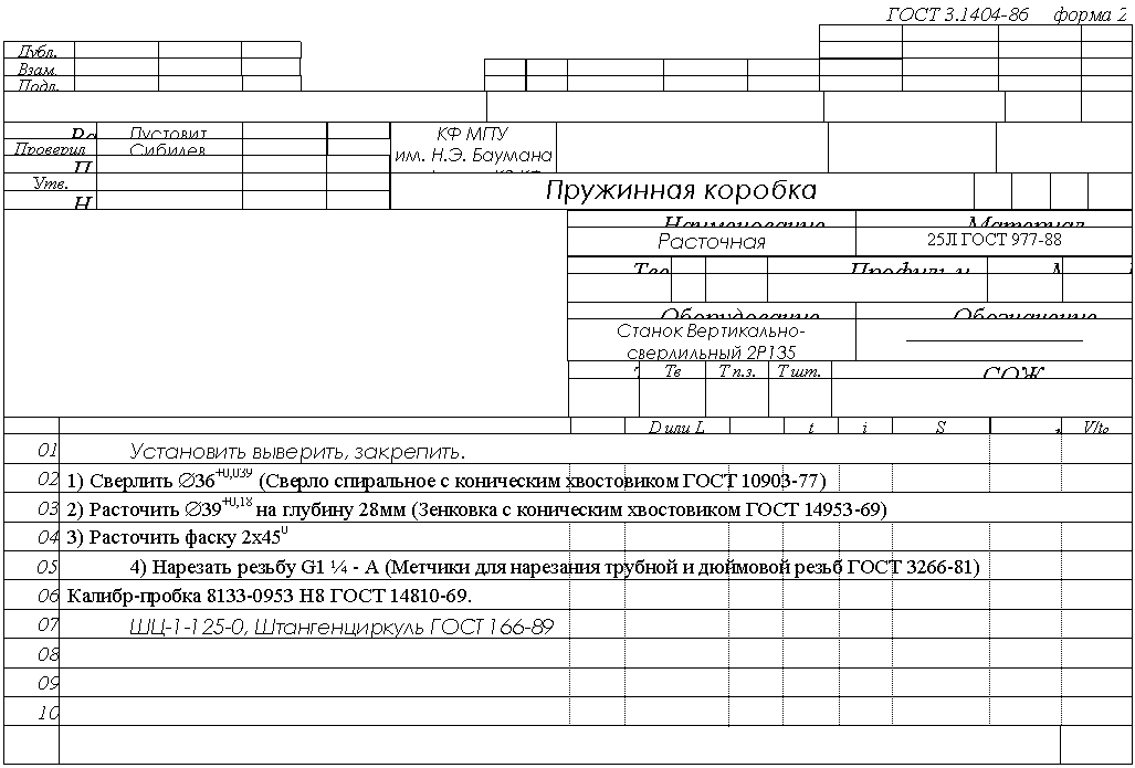 Разработка маршрута обработки заготовки