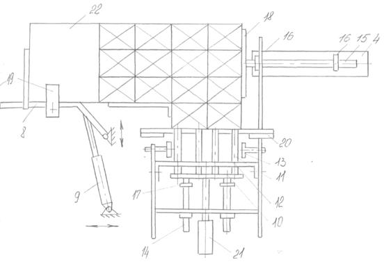 Заготовки ящика у вигляді штабеля закладаються в магазин (поз. 11). При