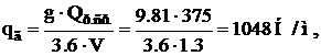 соответствия скорости ленты заданной производительности при ширине ленты B = 1000