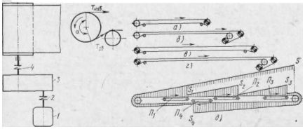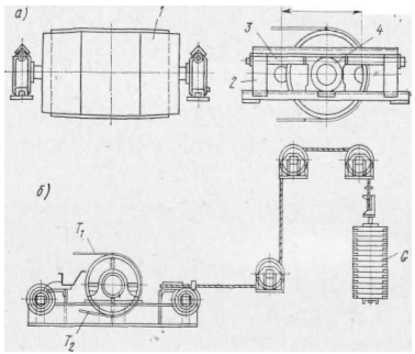 а) или двухбарабанный (рис.4,6), раздельный (на головном и хвостовом барабанах