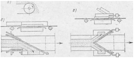 двигаясь вдоль щита» сбрасывается с ленты на одну или на обе стороны (рис.7,в).
