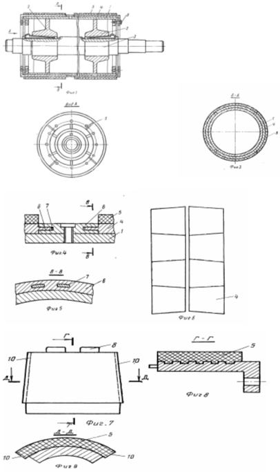 воспринимается как одно целое. Кольцо 6 осуществляет силовую связь футеровок