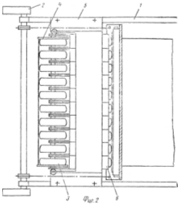 направляющим рамы конвейера, создавая при этом натяжение тягового органа 6.
