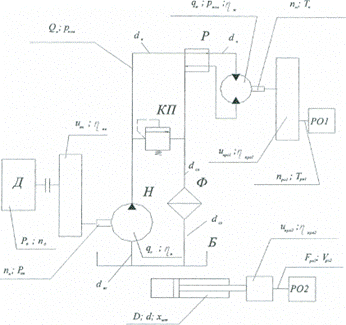 КП1, Р1 и М образуют силовую гидропередачу, а элементы Н2, Ф2, КП4, АК, Р2 и РЗ