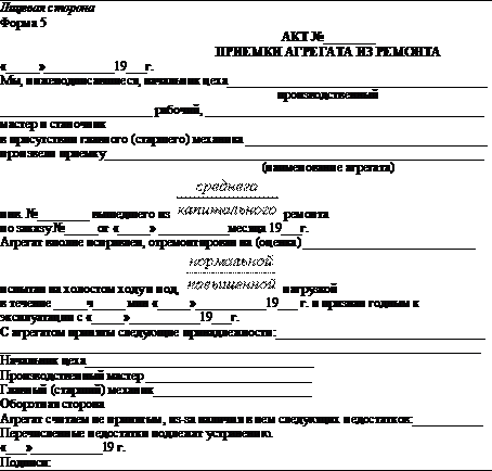 в ремонт и из ремонта производятся по актам (формы 14 и 15). При приемке машины