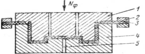 матрицу 4 и закрепляют поддоном 1 (рис.6) Через отверстие поддона подается