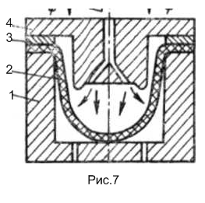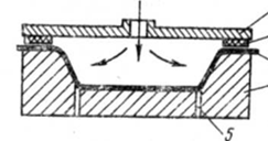 свободном выдувании (рис.9). В образовавшуюся полусферу вводят пуансон 4, а