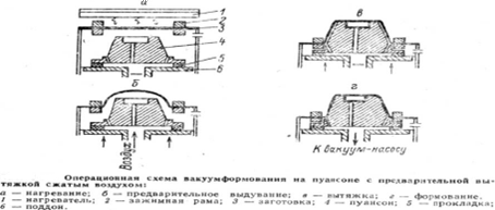на пуансоне с предварительной вытяжкой сжатым воздухом. Этот способ применяется в тех случаях, когда полимер очень