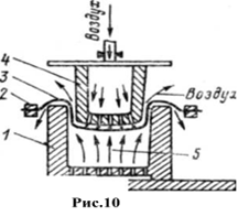 разогревается. Затем через отверстие в поддоне подается сжатый воздух, под