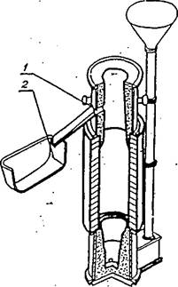 станина, 2 - бункер, 3 - щетки, 4 — механизм питания, 5 - приемная труба, 6 -