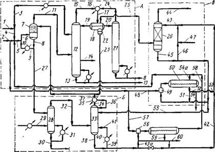 Основная реакция протекает в реакторе 6. Образующаяся