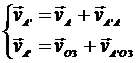 Система векторных уравнений скоростей точки А