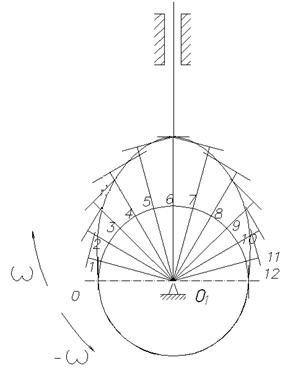 плавную кривую и вычерчиваем схему кулачкового механизма.