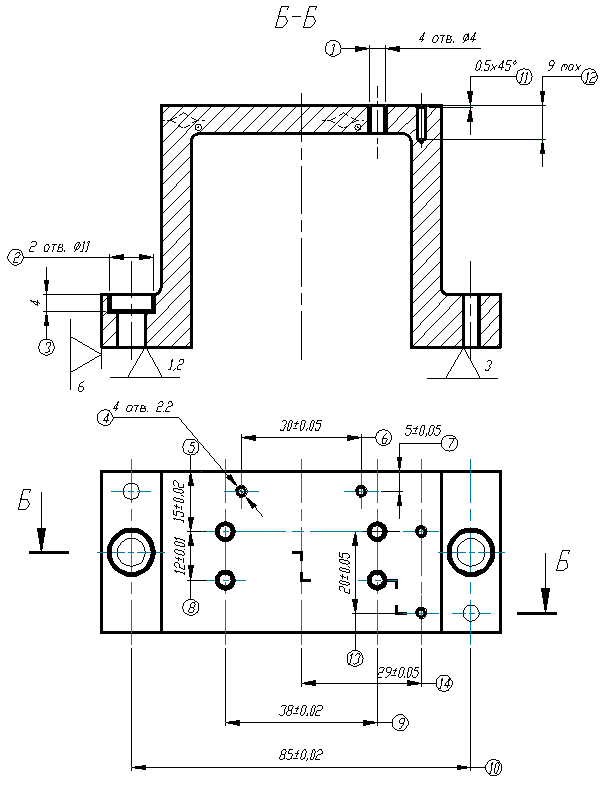 также два центрирующих отверстия под штифт Æ 4Н7 В перекладине выполняется 4 отверстия Æ 4+0,1, и