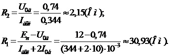 Принимаем R1 = 26 кОм; R2 = 39 кОм.