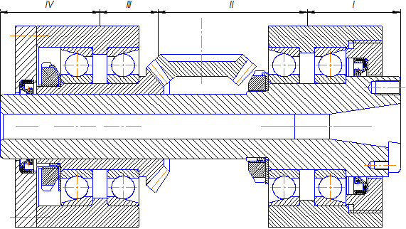 характеристик шпиндельного узла разобъем его на участки и расчитаем их осевые
