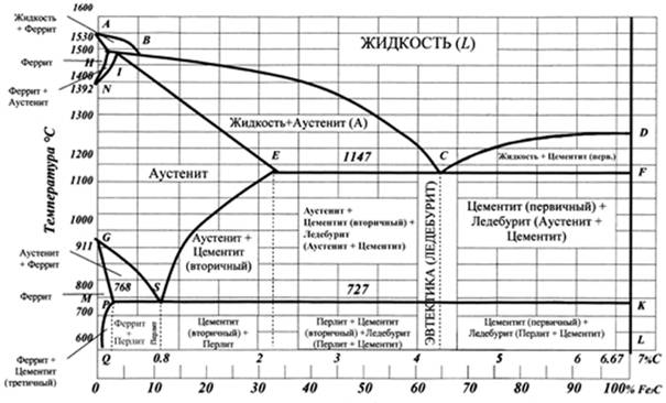 1. Вычертите диаграмму состояния железо – цементит, укажите