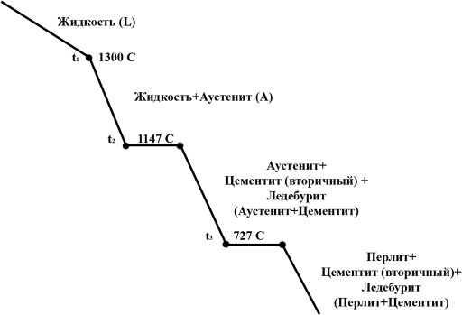 охлаждения (с применением правила фаз) для сплава, содержащего 3,5 % углерода