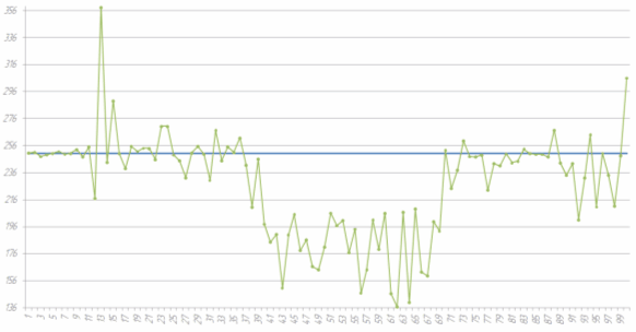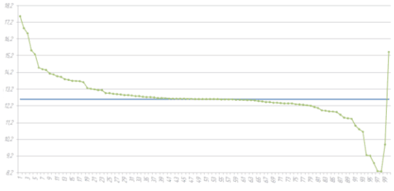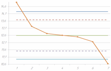 значений, по ней видно, что начиная с 4й выборки тех значения тяготеют к нижней