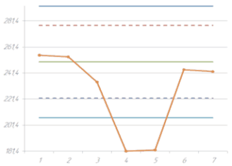 предупредительной границе, а 5 и 6 выборка выходят за нижнюю контрольную