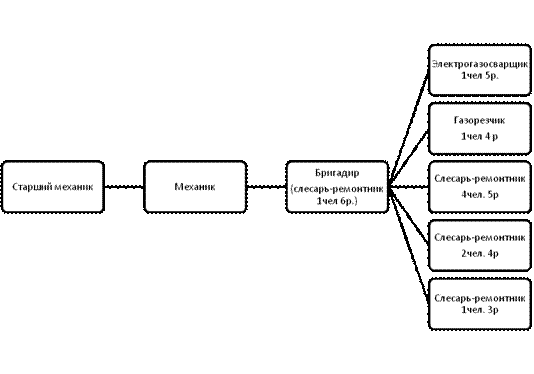 Структура механослужбы в цехе ремонта печных агрегатов представлена в семе: