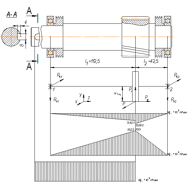где MXY = 176,5´103 Н*мм – изгибающий момент (эпюр моментов в схеме