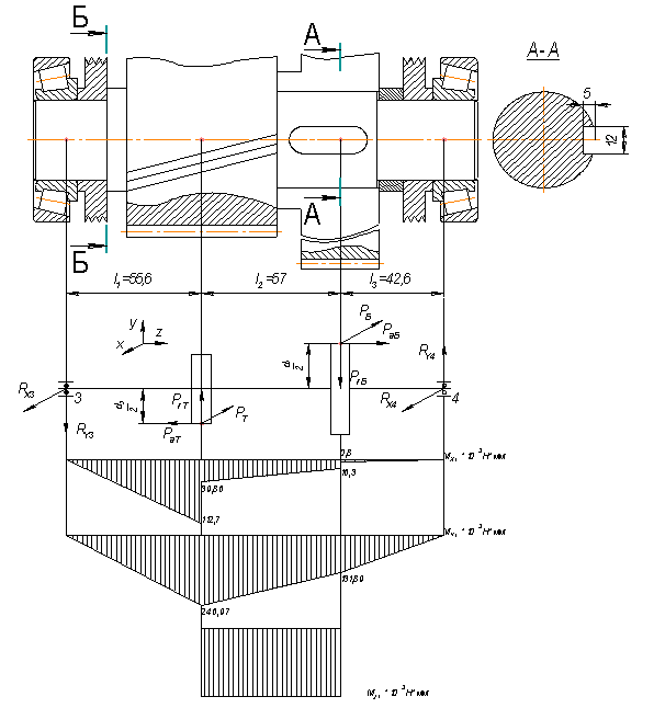 где MXY = 49,56´103 Н*мм – изгибающий момент (эпюр моментов в схеме