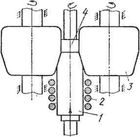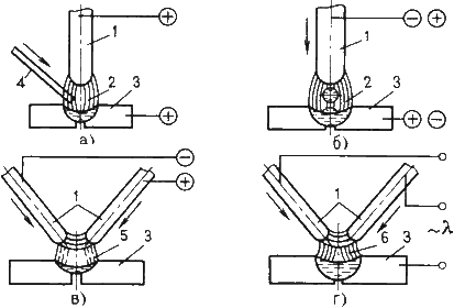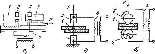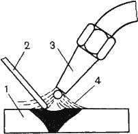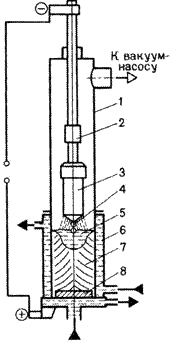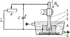 электроннолучевой сварки: 1 - катод электронной пушки; 2 - электрод; 3 - анод; 4