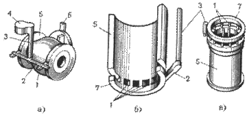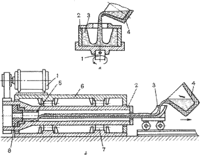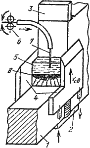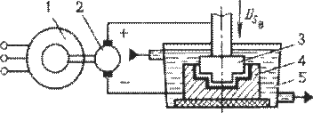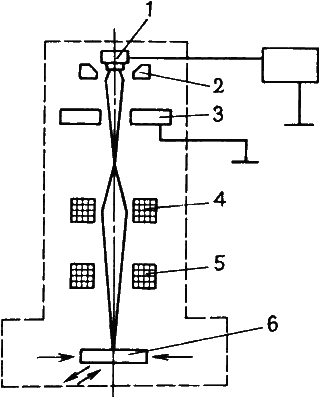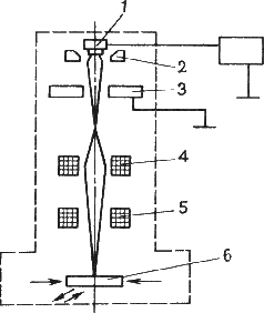 и 5 - отклоняющая магнитная система; 6 - заготовка