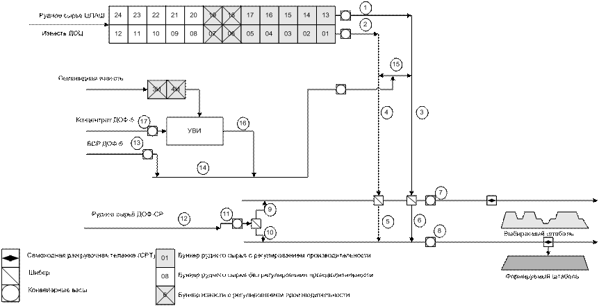 бункера привозной руды и приёмный бункер узла ввода извести (УВИ)