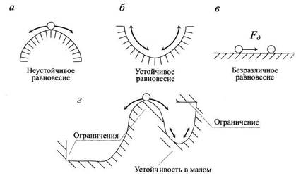 вернуться в исходное положение (неустойчивое равновесие), а во втором (рис. 1,б)