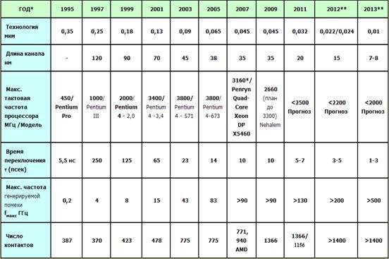 Последние процессоры от Интел имеют размер транзистора всего 0,09 микрон (1 микрон