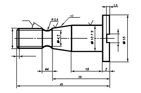 Точити заготовку до 15мм, l=45мм Точити заготовку до Ø 10мм,