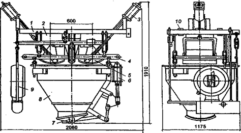 редуктор; 3 – плоскоременная передача; 4 – загрузочный бункер; 5 – упругая
