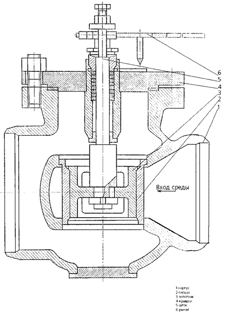 воздействует давление пара, стремящееся закрыть клапан. Усилие, действующее на