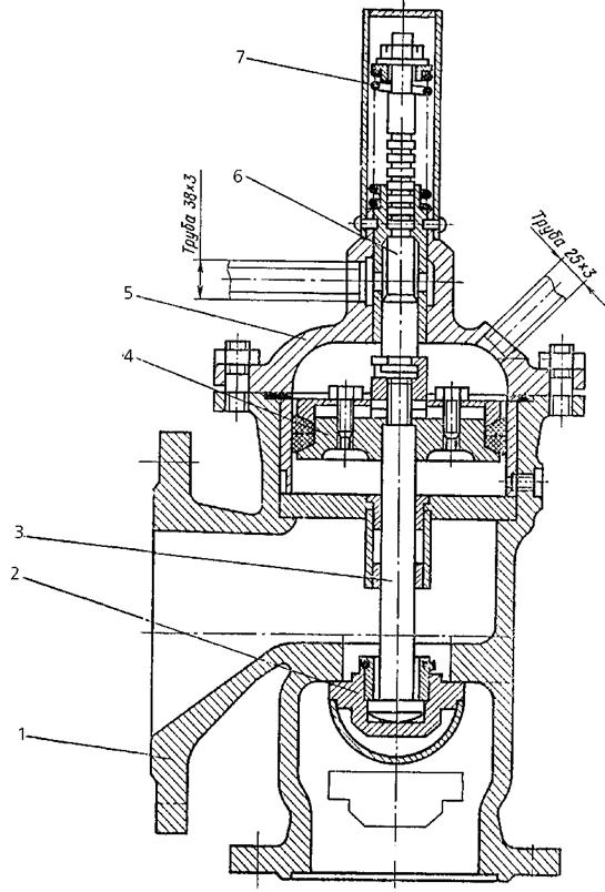 предохранительный клапан. Пар попадает в надпоршневое пространство сервопривода