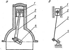 цилиндр 2, шатун 3 и кривошип 4, образующих кинематическую