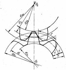вращении ведущего колеса зубья его перекаты-»даются по зубьям ведомого,