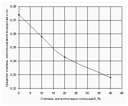 міра металізації доменної шихти при роботі печі без вдування вуглеводнів і