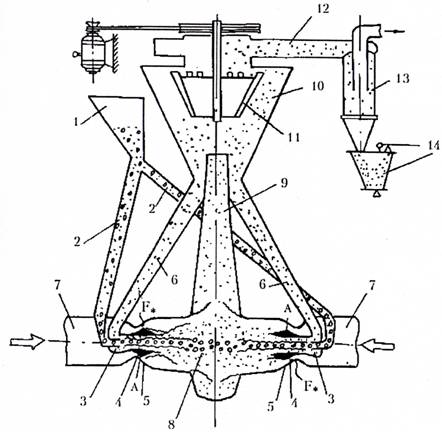 струменями повітря, створюючи високошвидкісні зустрічні двофазні потоки.