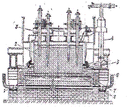 нее электрического тока. В печь подают брикеты титанового шлака, а через фурмы