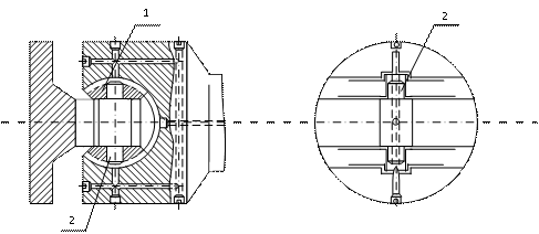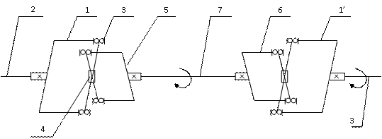 1 і 5 цільної хрестовини 4 і 4-х підшипникових вузлів 3 '. У підшипниковий