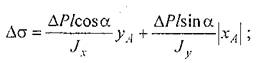напряжения и перемещения при косом изгибе балки.
