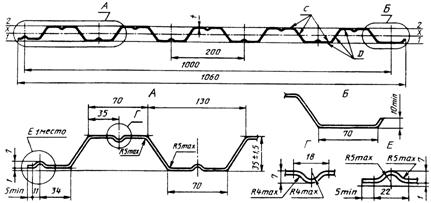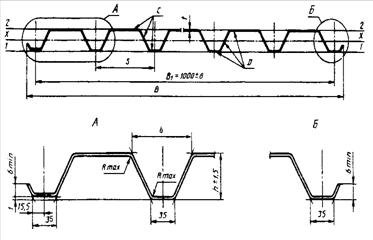 узких полок гофров профилированных листов должна быть не менее 2 мм.