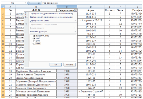 В данной работе мы будем рассматривать работу с базами данных в MS Excel.